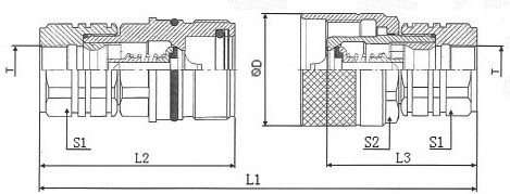 | 昌林液壓 | 國際標(biāo)準(zhǔn) | L1 | L2 | L3 | ØD | S1 | S2 | T | 母接頭編號 | 公接頭編號 |