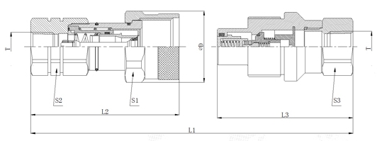 | 昌林液壓 | 國(guó)際標(biāo)準(zhǔn) | L1 | L2 | L3 | ?D | S1 | S2 | S3 | T | 母接頭編號(hào) | 公接頭編號(hào) |