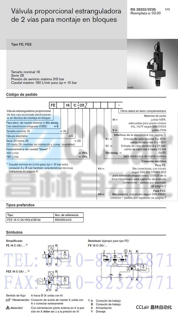 FEE16C-2X/100LK0B1V,FEE16C-2X/100LK0G1M,FE16C-2X/25LK4V,,通先導式比例節(jié)流閥,力士樂REXROTH,德國力士樂