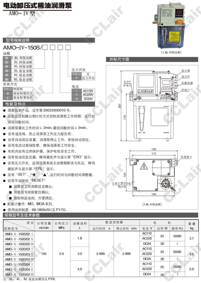 詳細信息 AMO-IV-150S,AMO-IV-150S/02I,AMO-IV-150S/02II,AMO-IV-150S/02III,電動卸壓式稀油潤滑泵