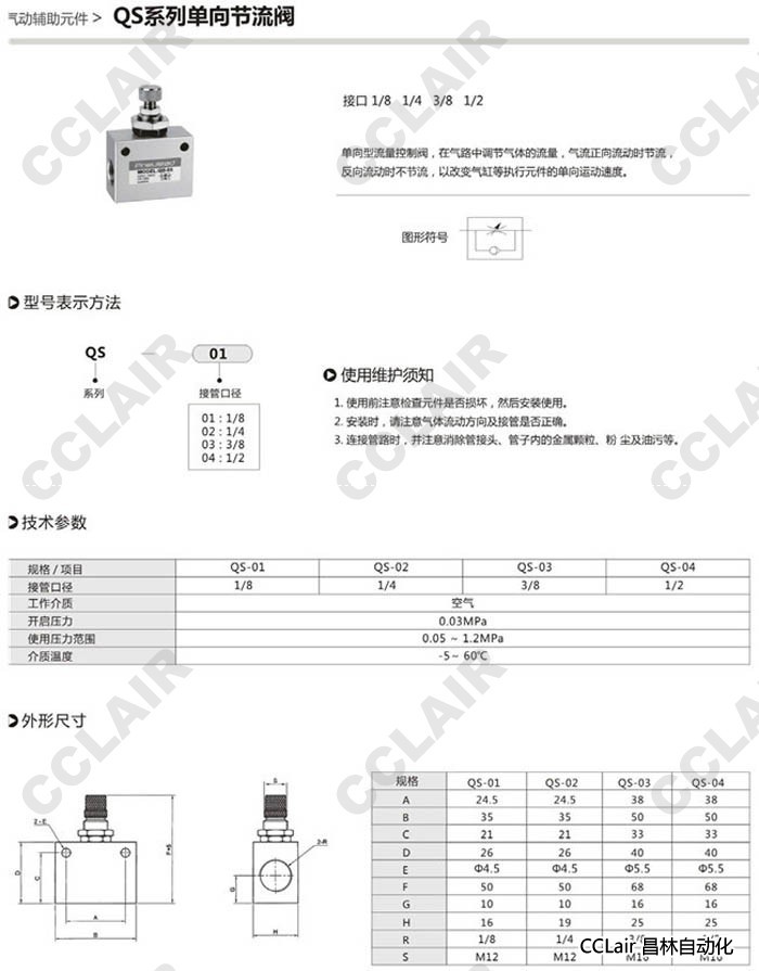詳細(xì)信息 QS-01,QS-02,QS-03,QS-04,單向節(jié)流閥