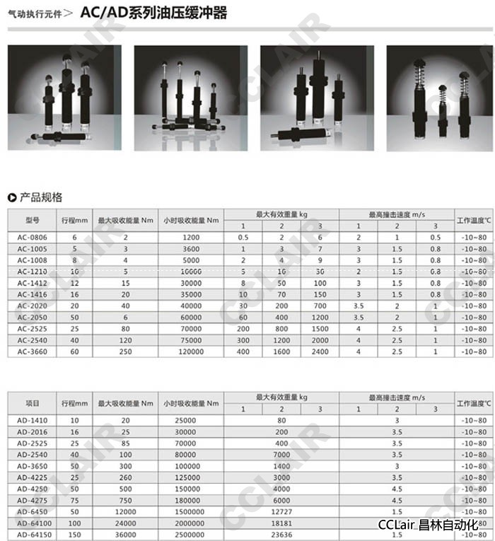 AC-0806,AC-1005,AC-1008,AC-1210,AC-1412,AC-1416,AC-2020,AC3660,油壓緩沖器