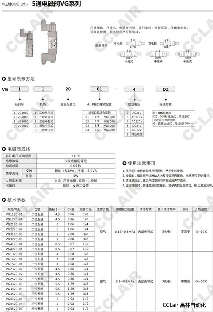 VG3120-01,VG3220-01,VG3320-01,VG3420-01,VG3520-01,五通電磁閥