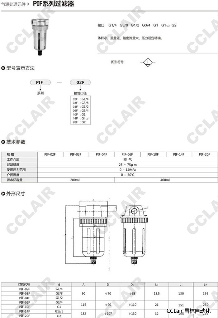 詳細信息 PIF-02F,PIF-03F,PIF-04F,PIF-06F,PIF-10F,PIF-14F,PIF-20F,過濾器