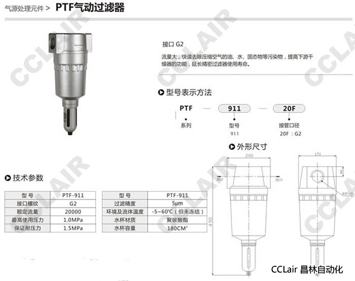詳細(xì)信息 PTF-911-20F,氣動(dòng)過濾器