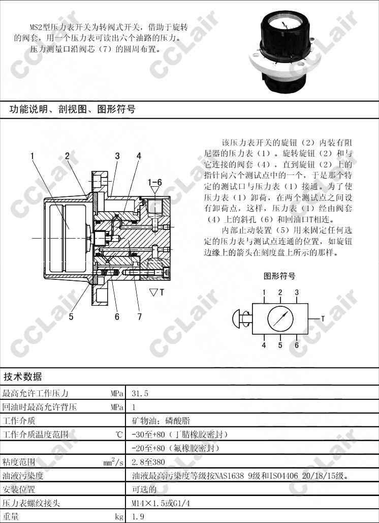 詳細信息 MS2A-L2X/4,MS2A-L2X/10,MS2A-L2X/16,MS2A-L2X/25,MS2A-L2X/40,多路壓力表開關