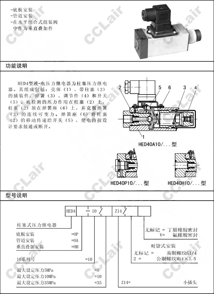 HED4OP-10/5,HED4OA-10/35,HED4OH-10/5,HED4OP-10/10,HED4OA-10/10,HED4OH-10/35,壓力繼電器