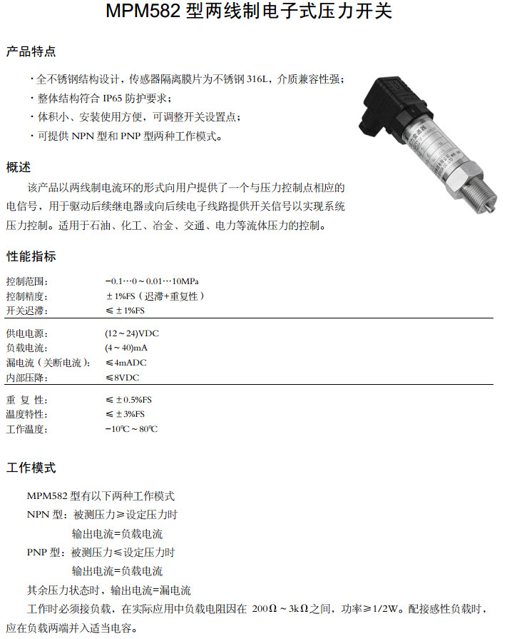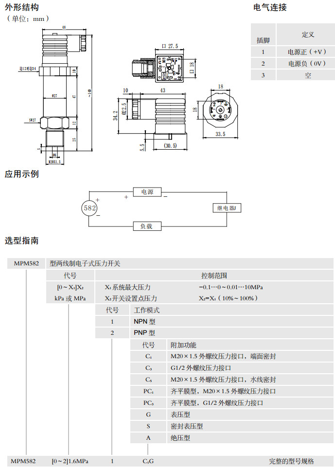MPM582-0.1-1,MPM582-0-1,MPM582-0.01-1,MPM582-0.01-2,MPM582-10-2,兩線制電子式壓力開關(guān)