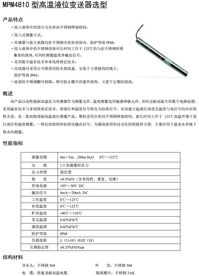 產(chǎn)品: 瀏覽次數(shù):706MPM4810-0,MPM4810-5,高溫液位變送器
