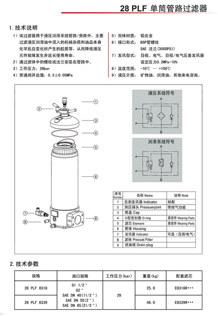 28PLF8316L,28PLF8339L,28PLF8316F,28PLF8339F,28PLF8316L24KN1,28PLF8316F24KN1,單筒管路過濾器