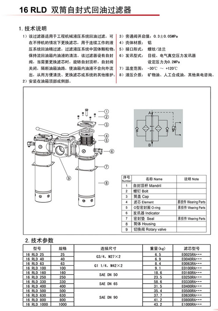 16RLD25,16RLD40,16RLD63,16RLD100,16RLD160,16RLD250,16RLD160KKN20ABP,雙筒自封式回油過(guò)濾器