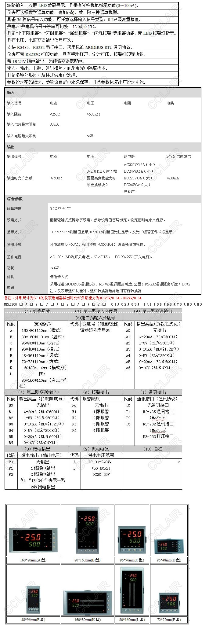 詳細信息 MEA5200-A,MEA5200-B,MEA5200-C,MEA5200,雙回路數(shù)字顯示控制儀