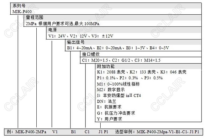 型號(hào): MIK-P400-2MPa-V1-B1-C1-J1P1,MIK-P400,殼體榔頭型工業(yè)壓力變送器