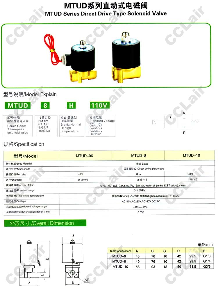 詳細信息 MTUD-06,MTUD-08,MTUD-10,直動式電磁閥,無錫昌林