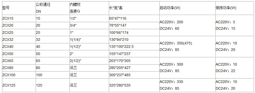 ZCX15-1.6,ZCX20-1.6,ZCX25-1.6,ZCX32-1.6,ZCX40-1.6,ZCX50-1.6,ZCX65-1.6,ZCX80-1.6,ZCX100-1.6,ZCX125-1.6,消防電磁閥