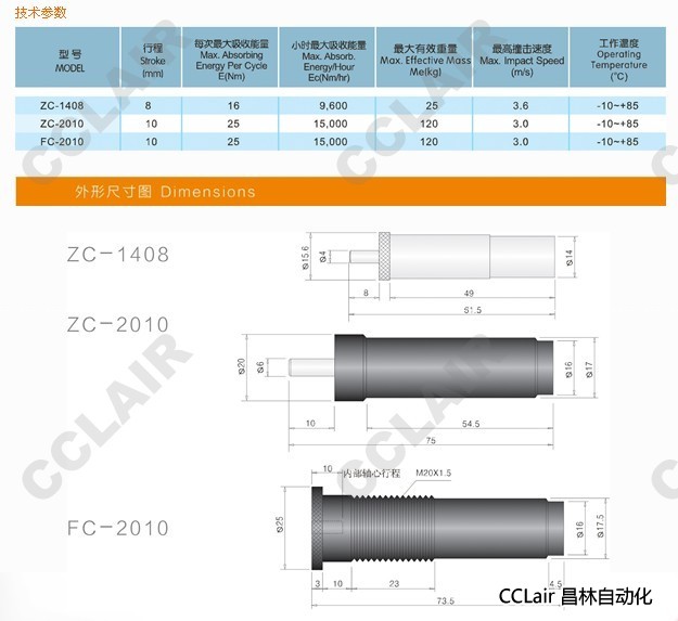 ZC-1408,ZC-2010,FC-2010,阻擋缸用固定式緩沖器