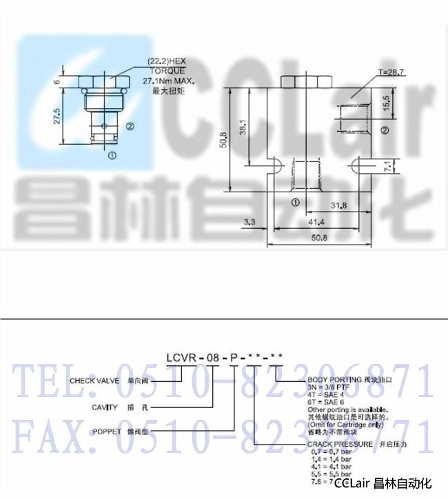 LCVR-08-P-4.1,LCVR-08-P-5.5,LCVR-08-P-7.6,反向單向閥