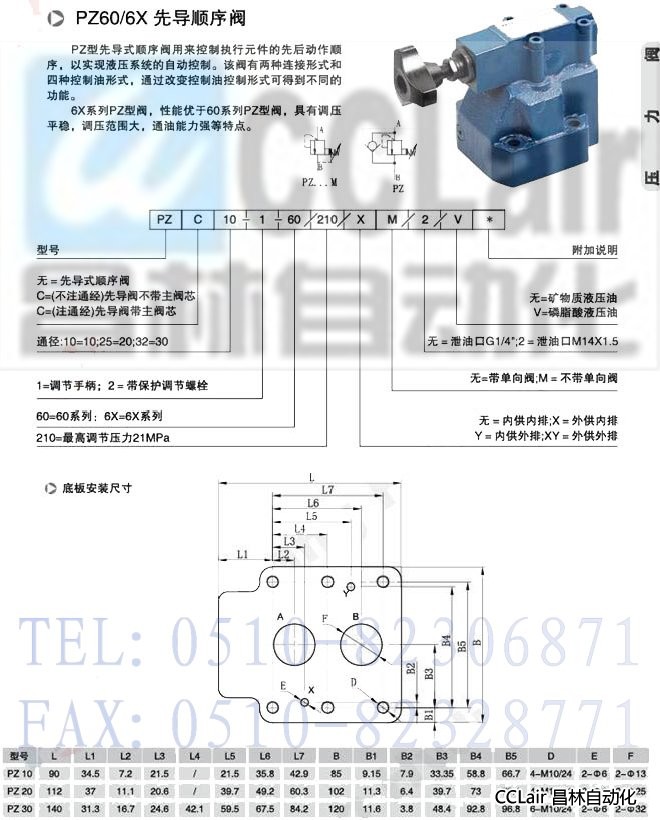 詳細(xì)信息 PZ10, PZ20, PZ30, 先導(dǎo)式順序閥