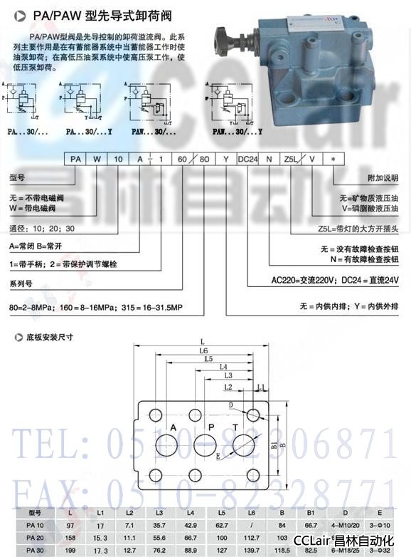 PA10,PA20,PA30,PAW10,PAW20,PAW30,先導(dǎo)式卸荷閥