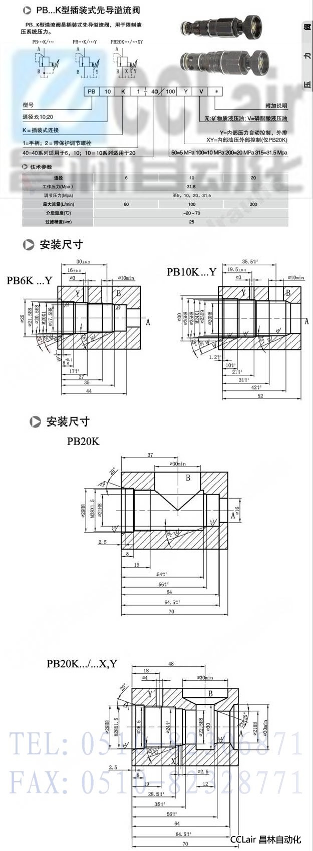 PB6K,PB10K,PB20K,插裝式先導溢流閥