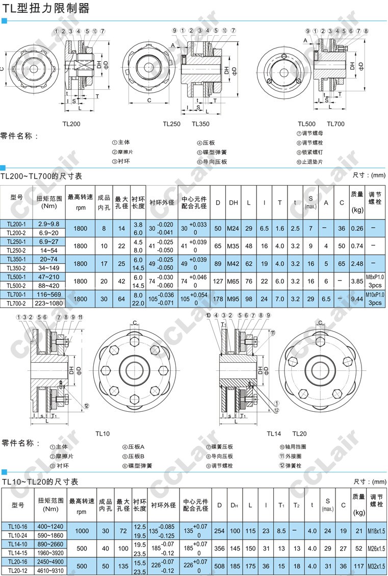 TL200-1,TL200-2,TL250-1,TL250-2,TL350-1,TL500-1,TL700-2,TL10-16,TL14-15,TL20-16,TL20-12,安全離合器