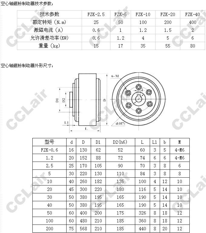 FZK-0.6,FZK-1.2,FZK-2.5,FZK-5,FZK-10,FZK-20,FZK-30,FZK-40,FZK-50,FZK-100,FZK-200,空心軸磁粉制動器
