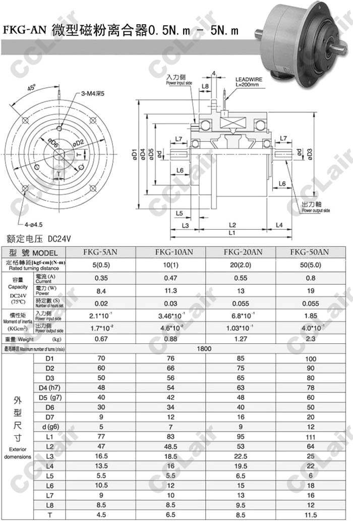 FKG-5AN,FKG-10AN,FKG-20AN,FKG-50AN,微型磁粉離合器
