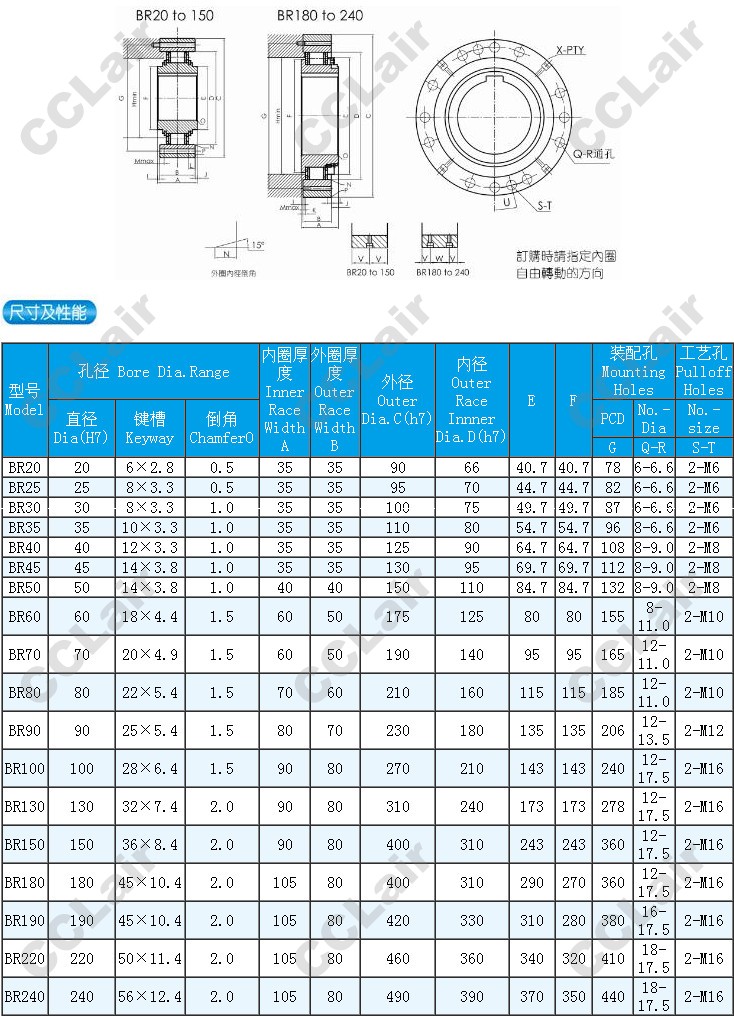 BR20,BR25,BR30,BR35,BR40,BR45,BR50,BR60,BR70,BR80,BR90,BR100,BR130,BR150,BR180,BR190,非接觸式楔塊離合器