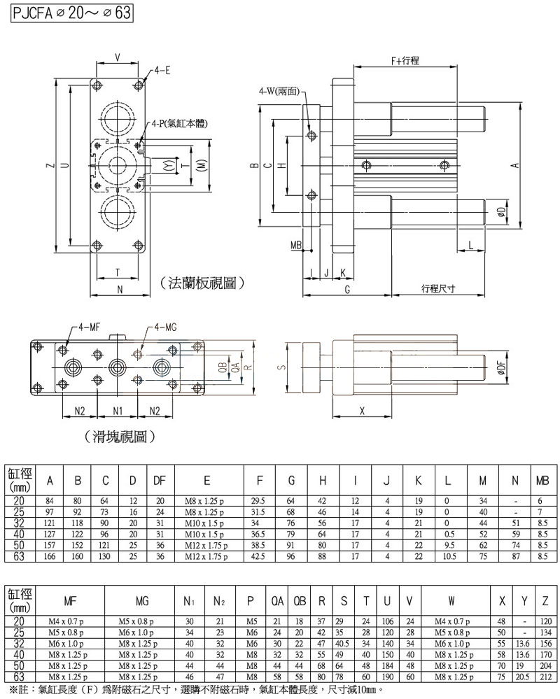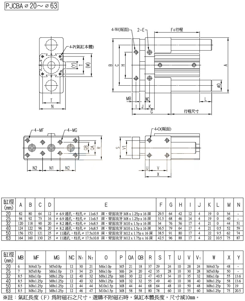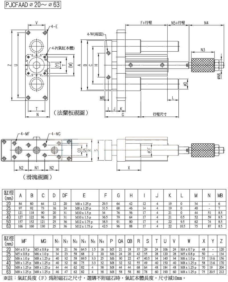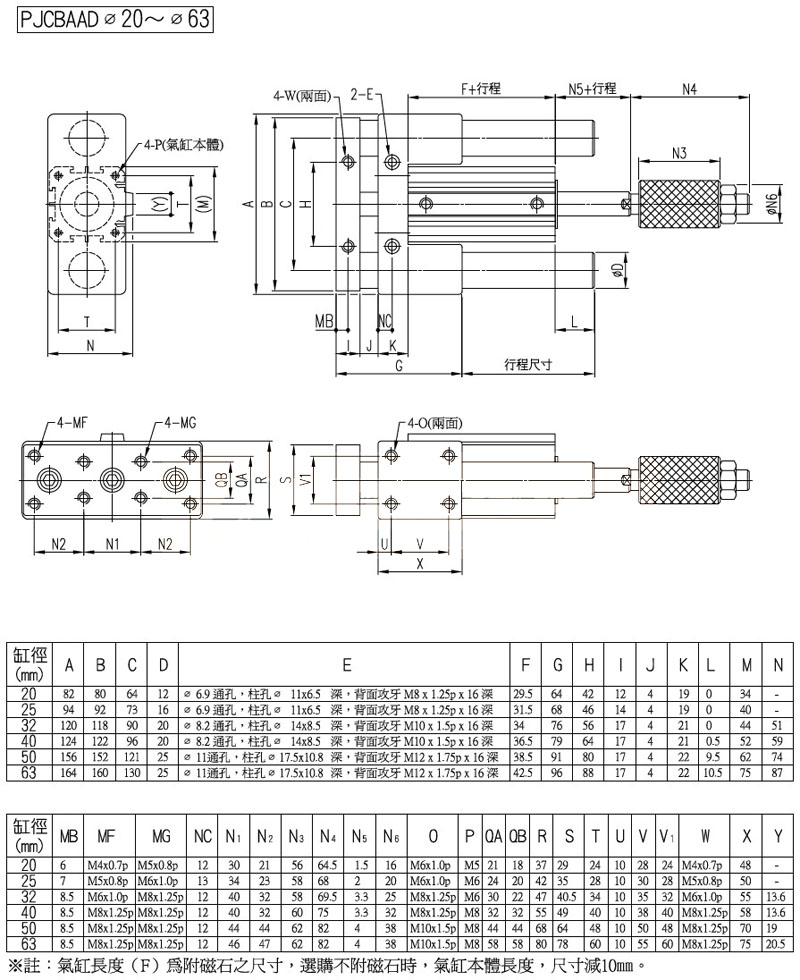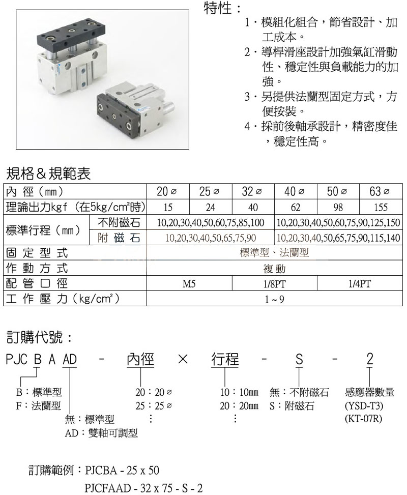 PJCBA-20,PJCFA-32,PJCBA-40,PJCFAAD-20,PJCBAAD-32,panix滑臺(tái)治具氣缸