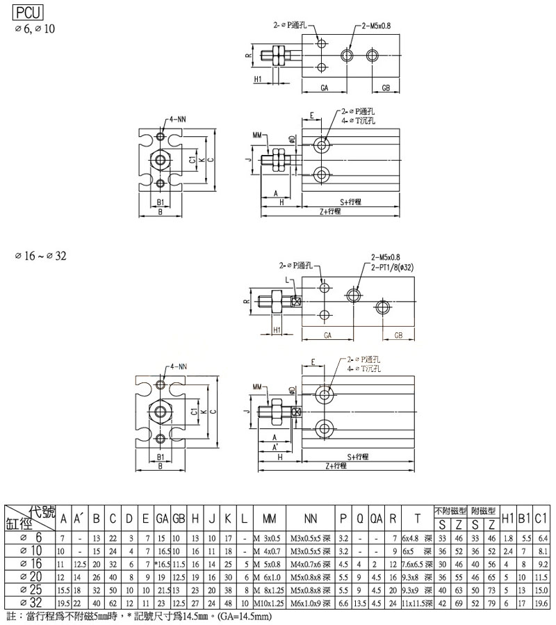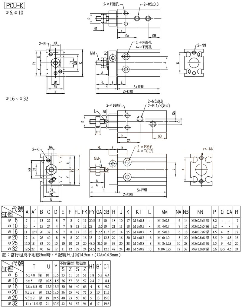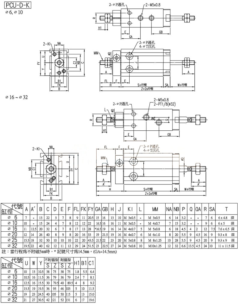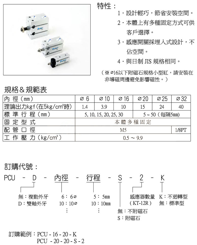 型號: PCU-6,PCU-10,PCU-D-16,PCU-D-20,PCU-25,PCU-D-32,panix多固型氣缸