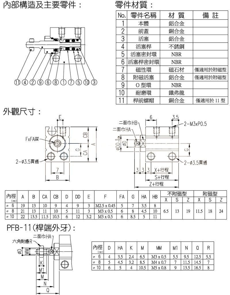 PFB-11-6,PFB-11-8,PFB-11-10,PFB-12-6,PFB-12-8,panix自由安裝氣壓缸 |