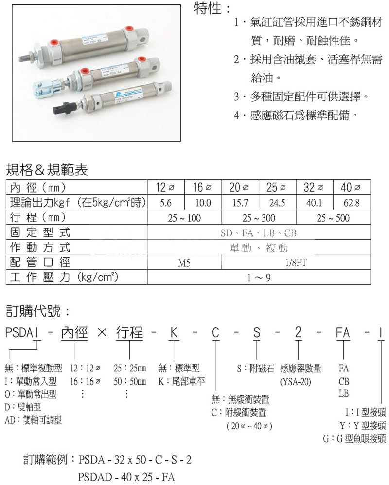 PSDA-12,PSDAI-16,PSDAO-20,PSDAD-25,PSDAAD-32,panix迷你氣缸