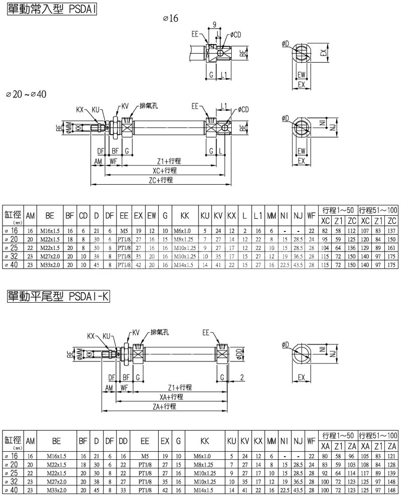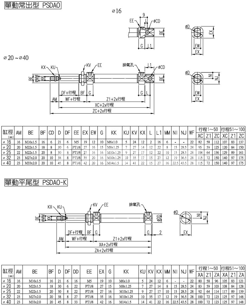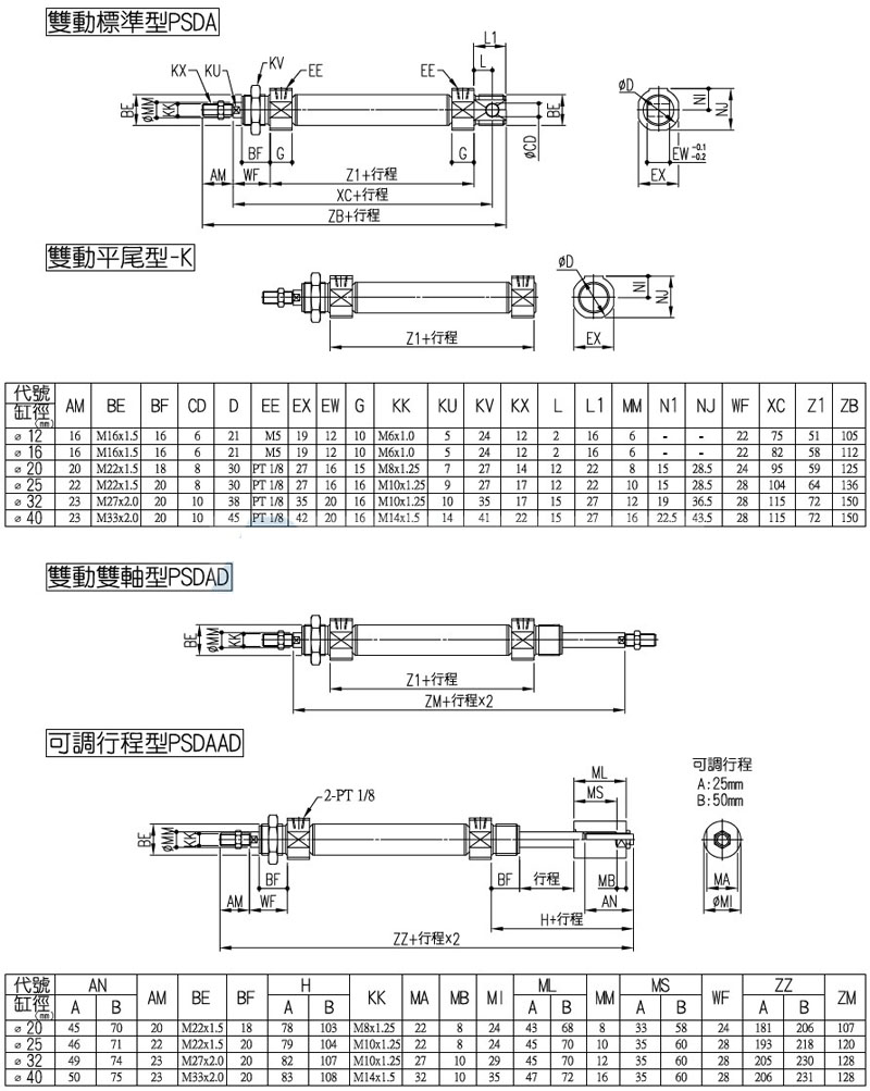 PSDAD-32*25,PSDAD-32*50,PSDAD-32*75,PSDAD-32*100,PSDAD-32*150,PSDAD-32*200,