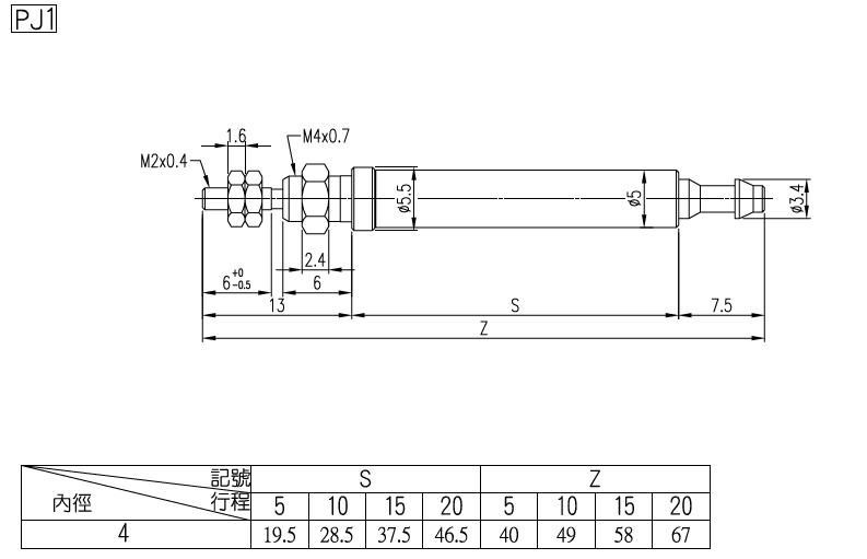 型號(hào): PJ1-4*5,PJ1-4*10,PJ1-4*15,PJ1-4*20,panix筆型氣缸