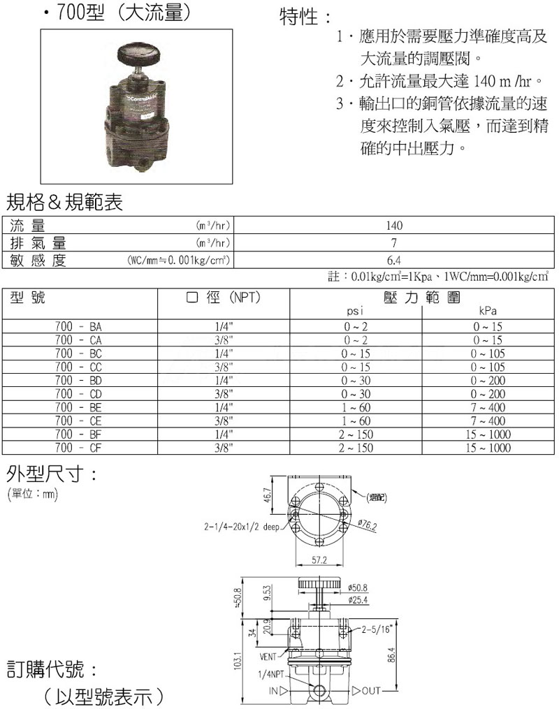 700-BA,700-CA,700-BC,700-CC,700-BD,700-CD,700-BE,panix精密調壓閥 |