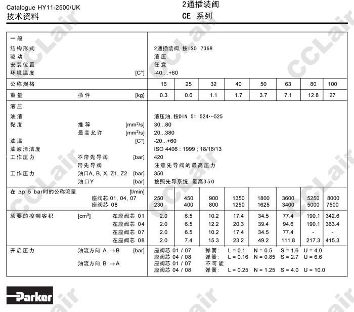 CE016,CE025,CE032,CE040,CE050,CE063,CE080,CE100,CE016C01L99N,CE016C01N99N,Parker2通插裝閥
