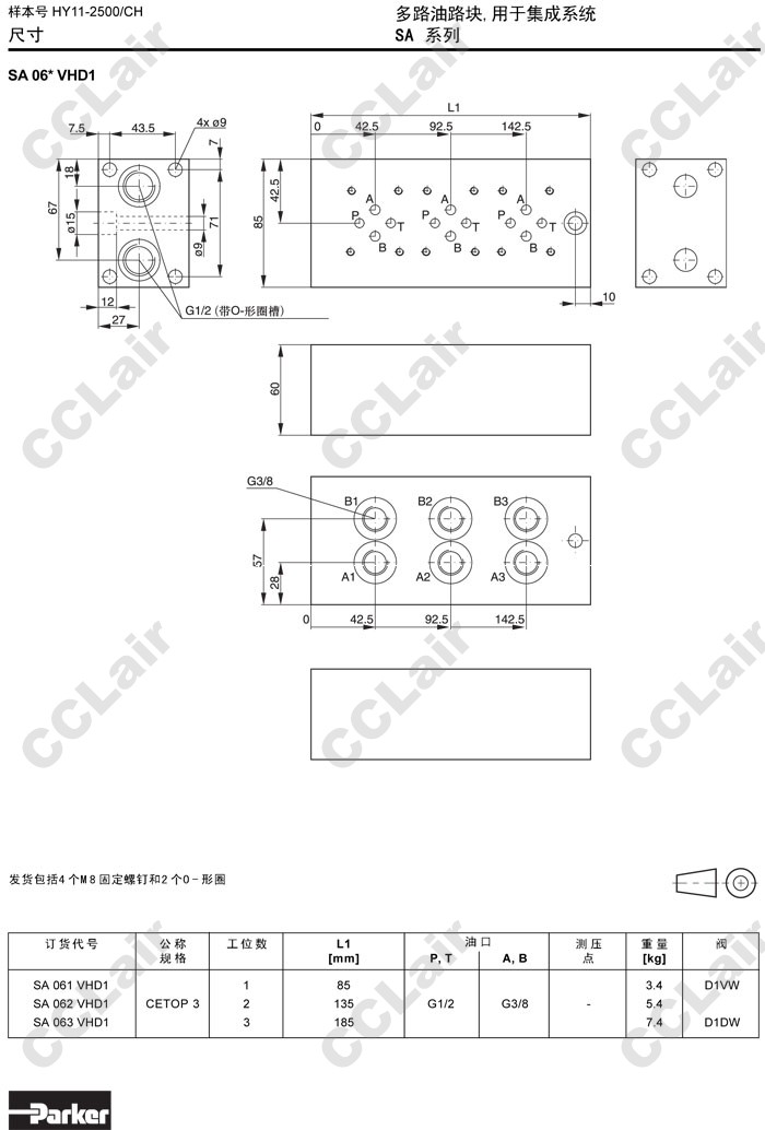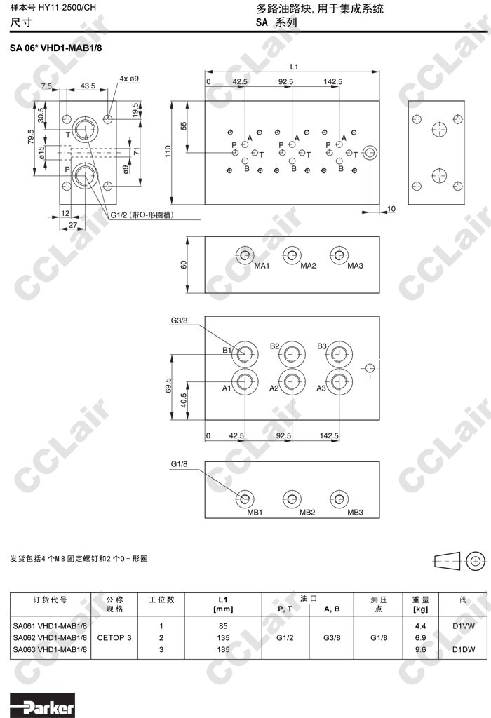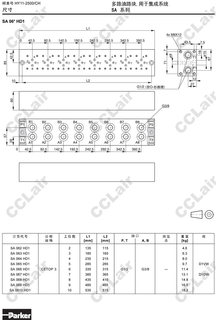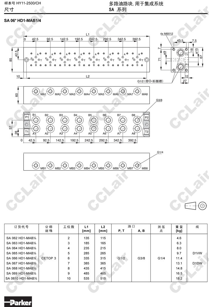 SA062HD1,SA063HD1,SA064HD1,SA065HD1,SA066HD1,SA067HD1,SA068HD1,SA069HD1,SA0610HD1,Parker多路油路塊