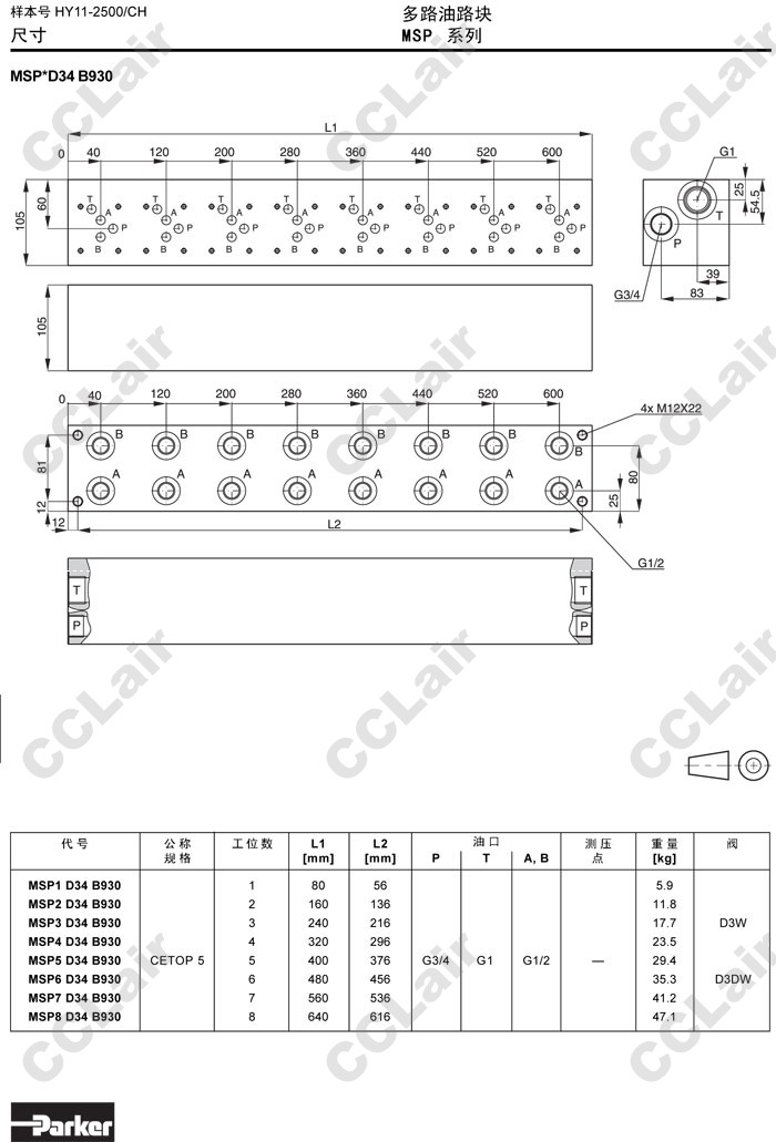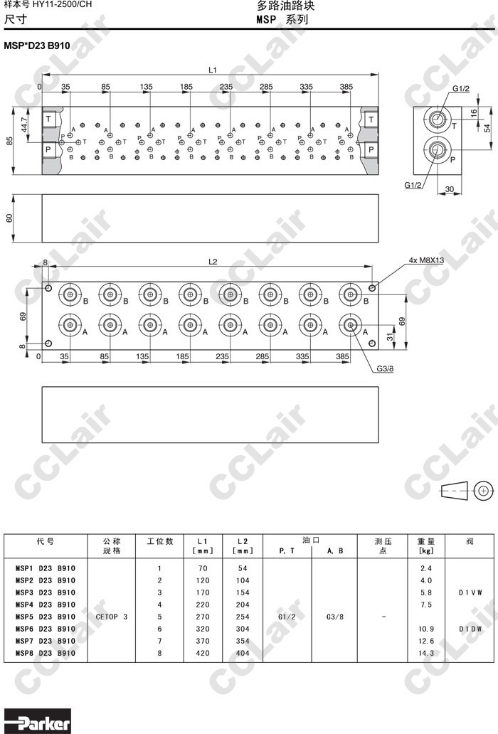 MSP1D,MSP2D,MSP3D,MSP4D,MSP5D,MSP6D,MSP7D,MSP8D,MSP1D23B910,MSP1D34B930,Parker多路油路塊