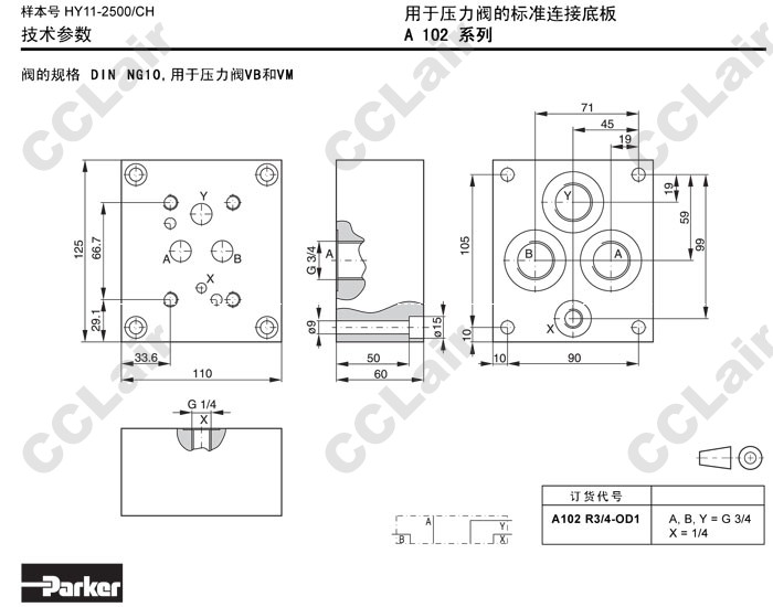 A102R3/4-OD1,Parker標準連接底板
