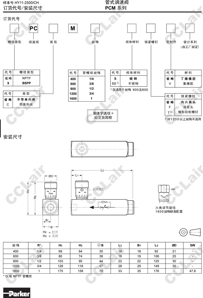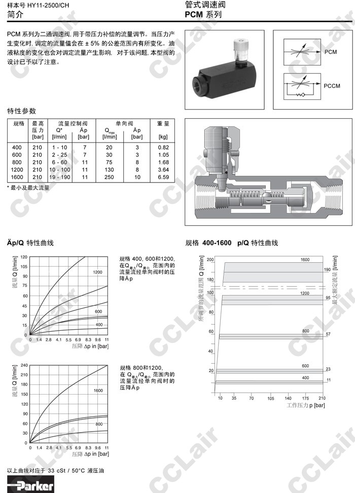 PCM400,PCM600,PCM800,PCM1200,PCM1600,PCCM400,PCCM600,PCCM800,PCCM1200,PCCM1600,Parker管式調速閥