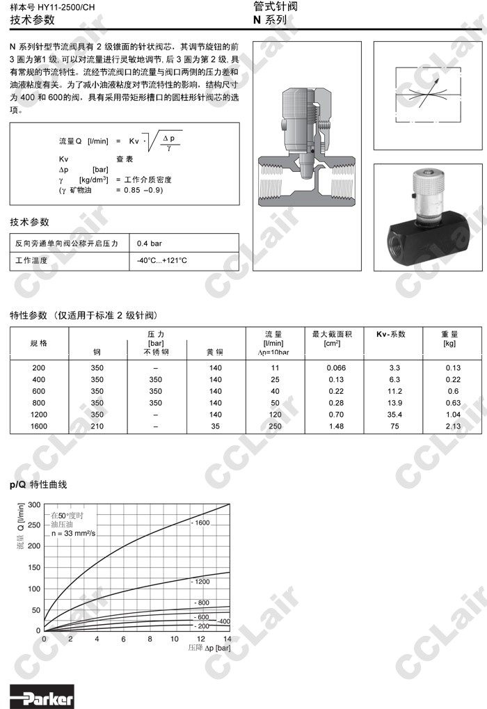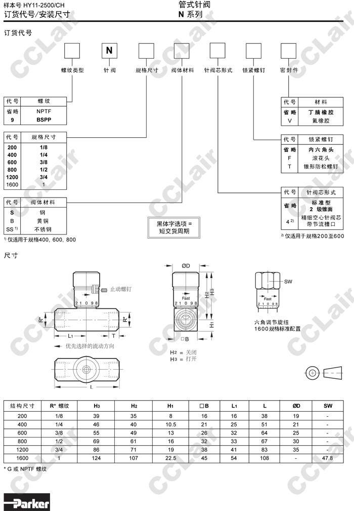 詳細信息 N200S,N400S,N600S,N800S,N1200S,N1600S,N200B,N400B,N600B,N800B,N1200B,N1600B,Parker管式針閥
