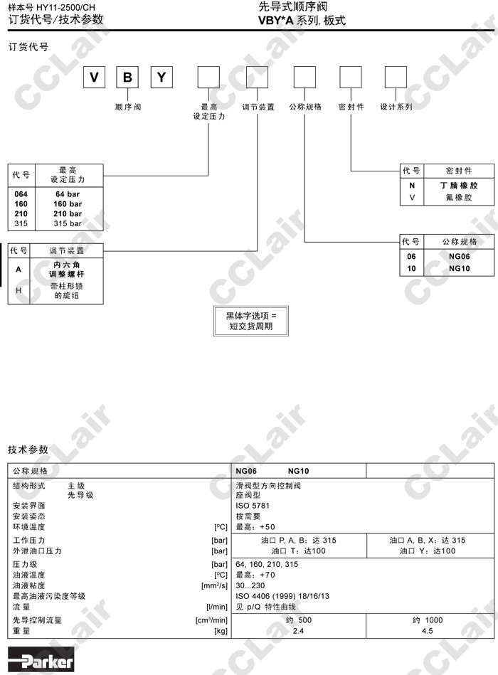 詳細(xì)信息 VBY064A06N,VBY160A06N,VBY210A06N,VBY315A06N,VBY064H10N,VBY160H10N,VBY210H10N,VBY315H10N,Parker先導(dǎo)式順序閥
