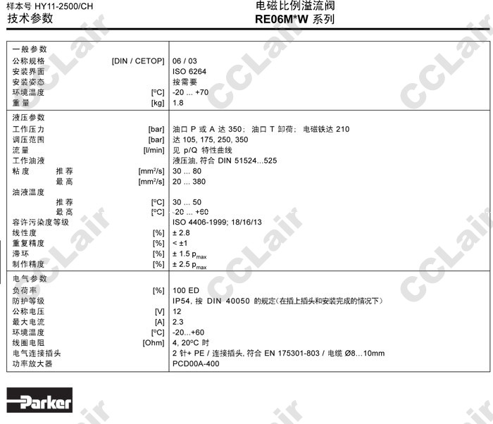 詳細(xì)信息 RE06M10W2V1KW,RE06M17W2V1KW,RE06M25W2V1KW,RE06M35W2V1KW,RE06M10W2V1XW,Parker電磁比例溢流閥