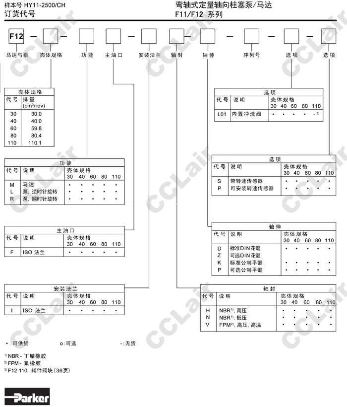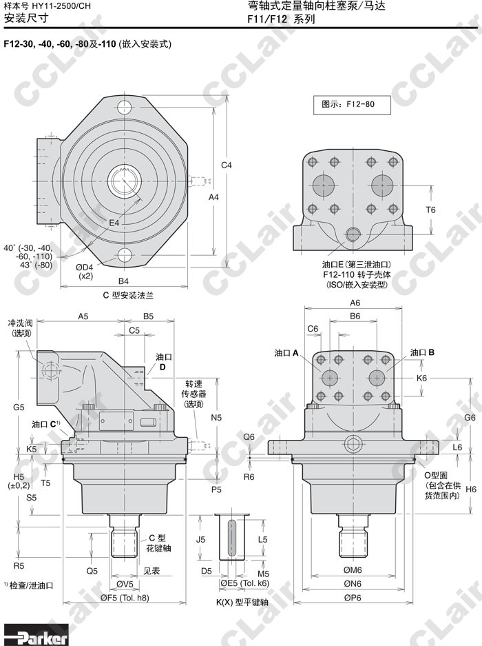 F12-30-L,F12-40-L,F12-50-L,F12-60-L,F12-80-L,F12-110-L,F12-110-LF-IV-K,Parker彎軸式定量軸向柱塞泵