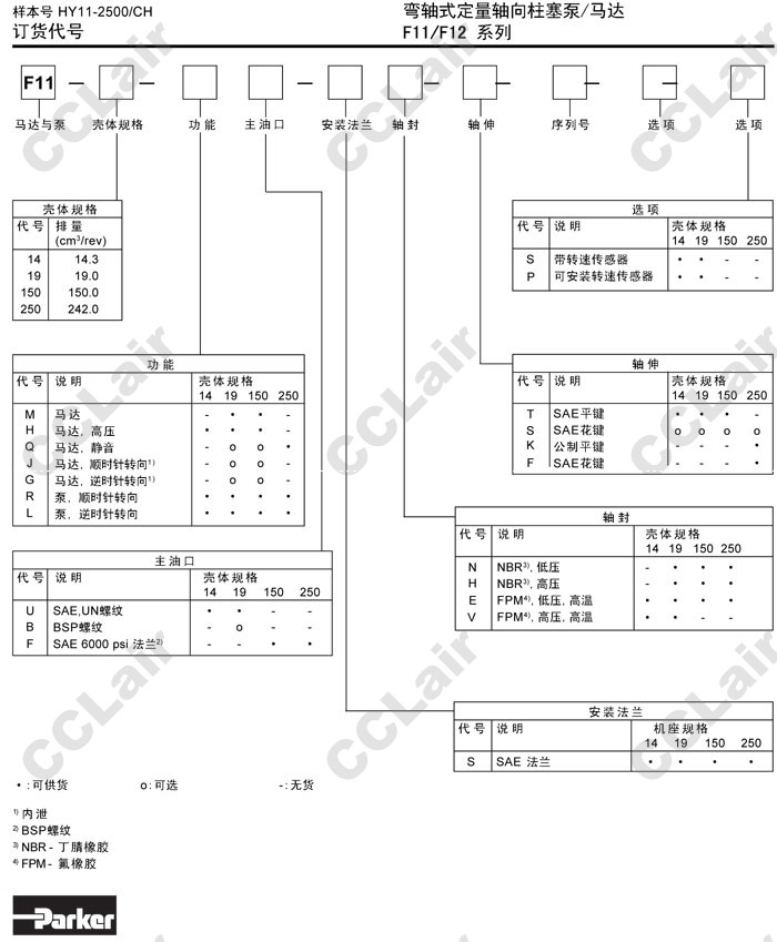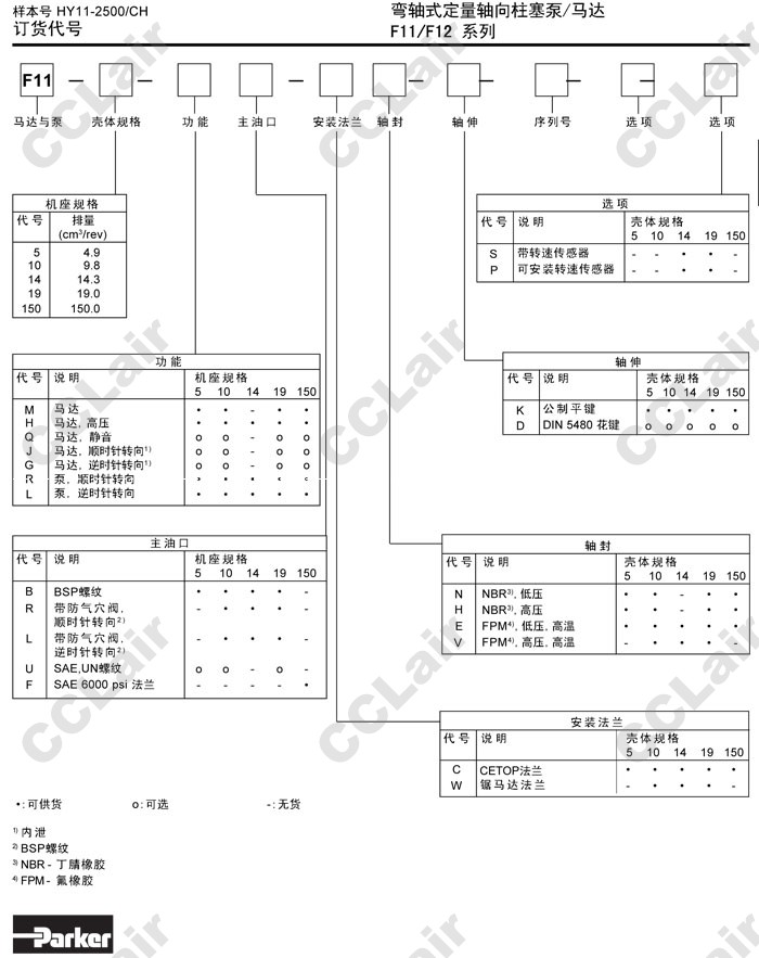 詳細信息 F11-005-R,F11-010-R,F11-014-R,F11-019-R,F11-150-R,F11-005-RB-CN-K,Parker彎軸式定量軸向柱塞馬達
