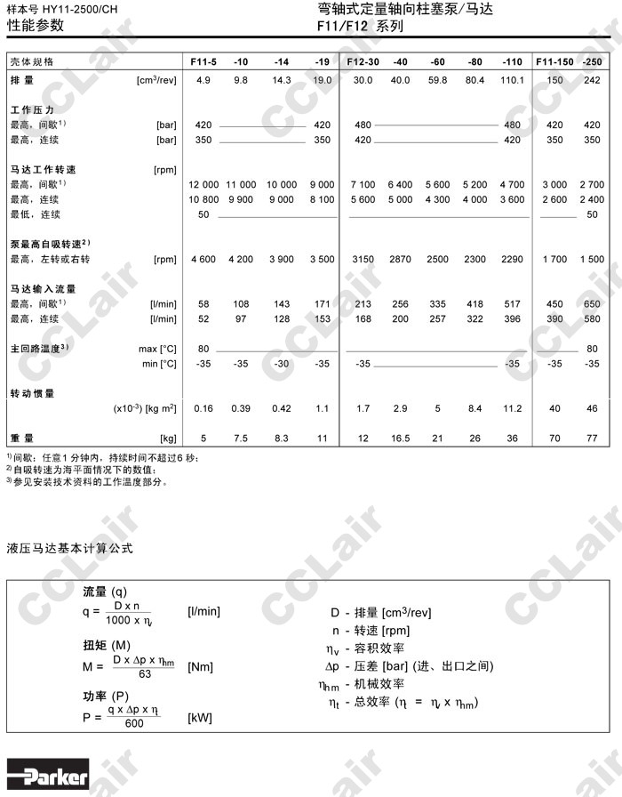 F11-005-R,F11-010-R,F11-014-R,F11-019-R,F11-150-R,F11-005-RB-CN-K,Parker彎軸式定量軸向柱塞馬達