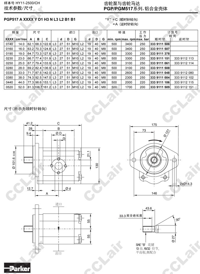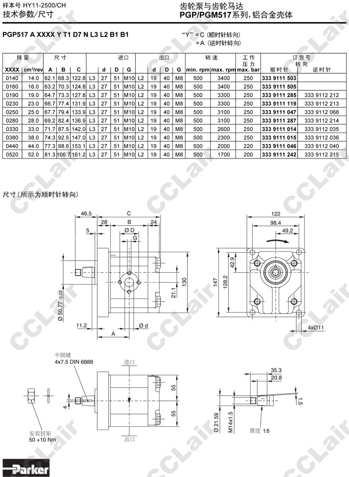 PGM517A,PGM517B,PGM517C,PGM517A0140CD1H2,PGM517C0140CD1H2,PGM517B0140CD1H2,Parker齒輪馬達(dá)