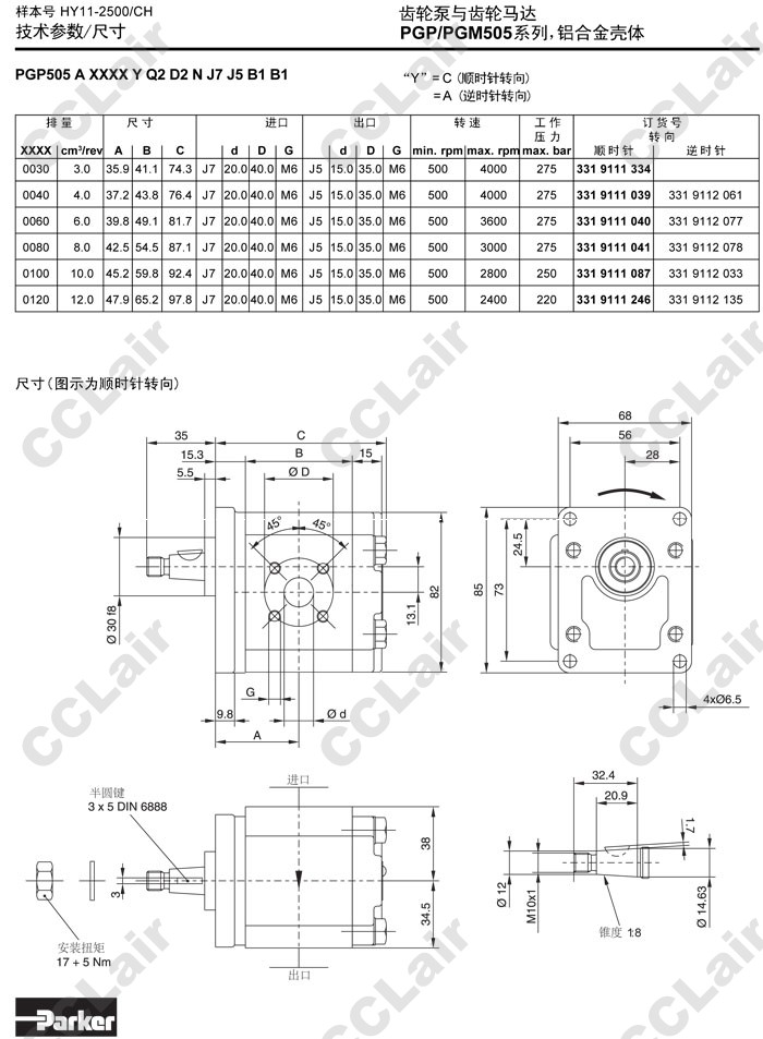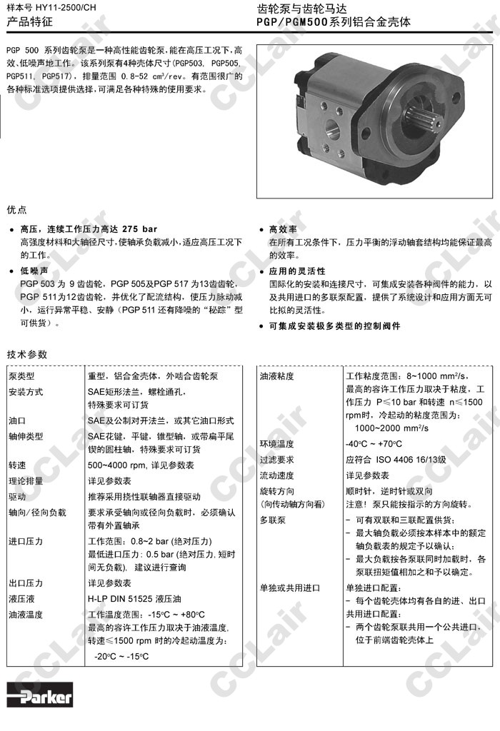 PGP505A,PGP505B,PGP505M,PGP505A0030CA1H1,PGP505M0030CA1H1,PGP505B0030AA1H1,Parker齒輪泵