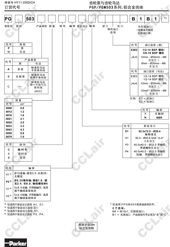 PGM503A,PGM503B,PGM503C,PGM503A0008CH1D1,PGM503B0008CH1D1,PGM503C0008CH1D1,Parker齒輪馬達