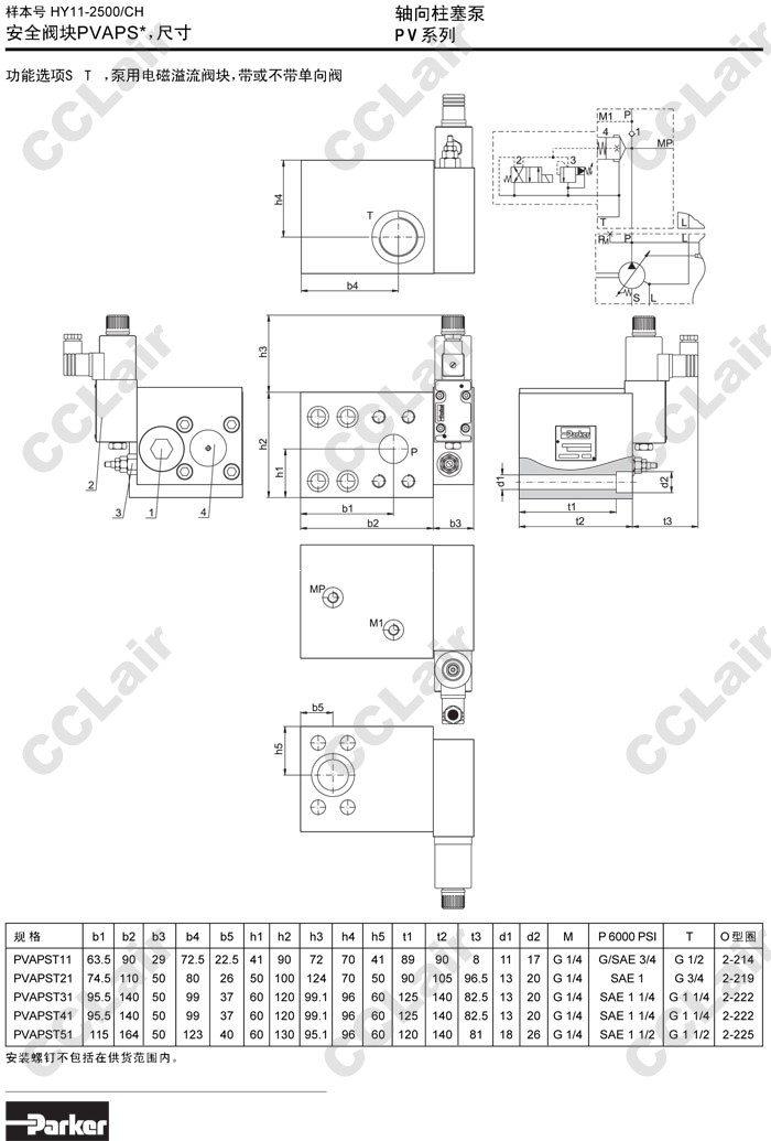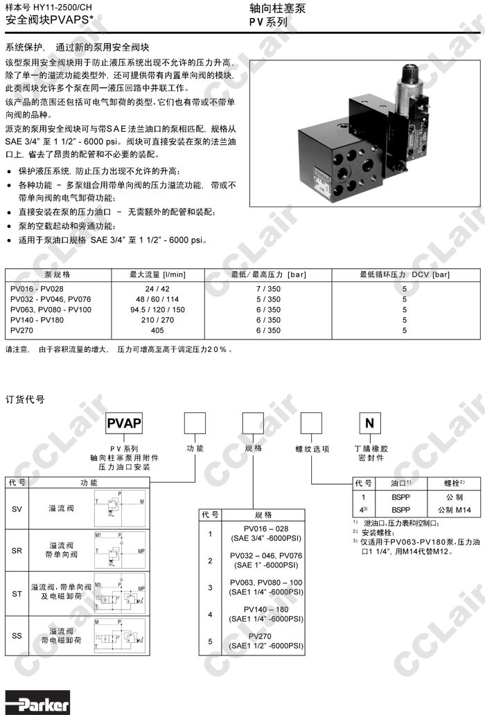 詳細信息 PVAPST11,PVAPST21,PVAPST31,PVAPST41,PVAPST51,PVAPSS11,PVAPSS21,PVAPSS31,PVAPSS41,PVAPSS51,Parker安全閥塊